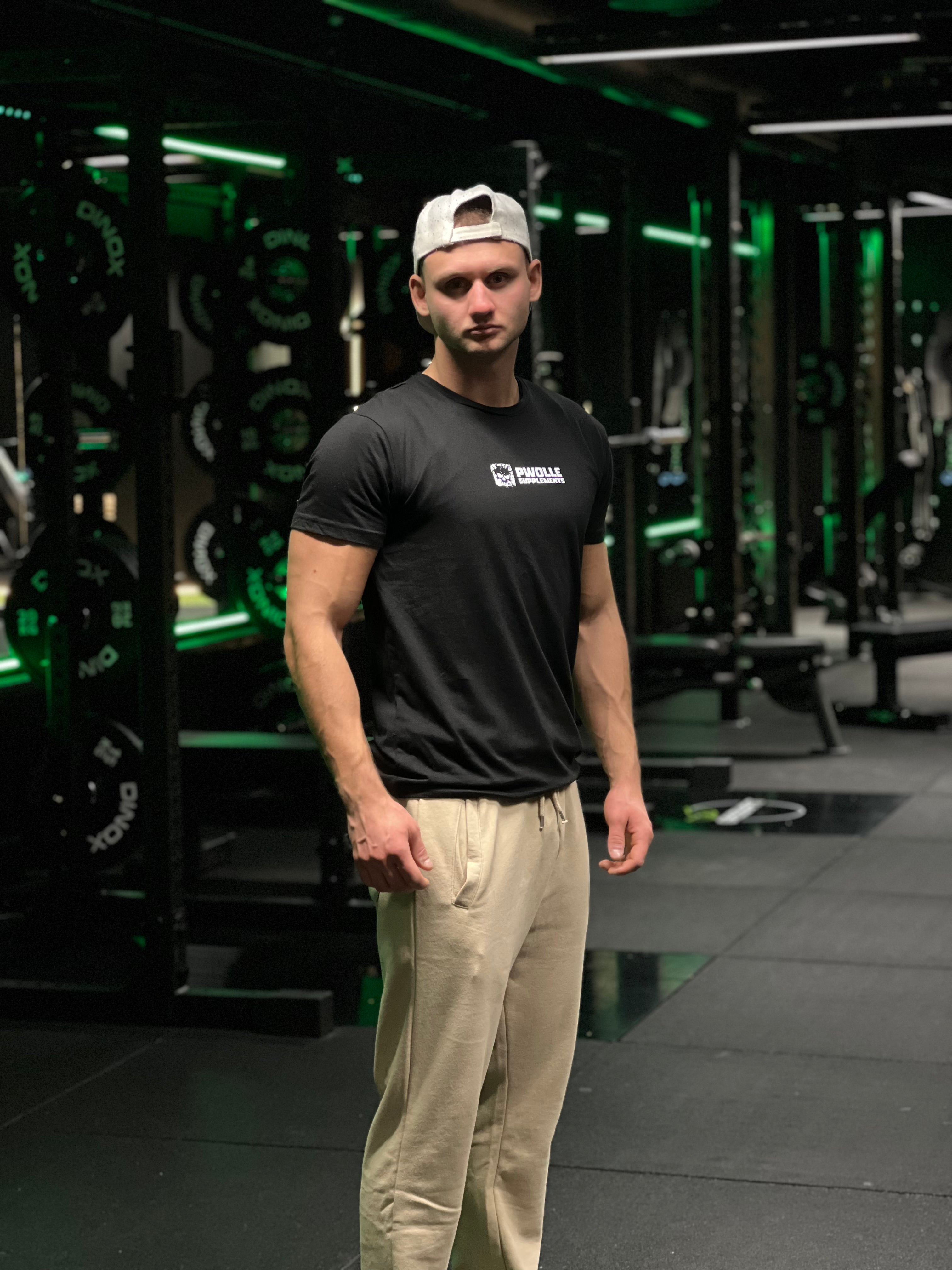 Pwolle t-paita istuu napakasti, mutta antaa elastaanin ansiosta liikkua vapaasti jokaisessa toistossa. Puuvillainen kangas tuntuu mukavalta ihoa vasten niin raskaissa nostoissa kuin arjessa. Selkeä, sporttinen ilme toimii...